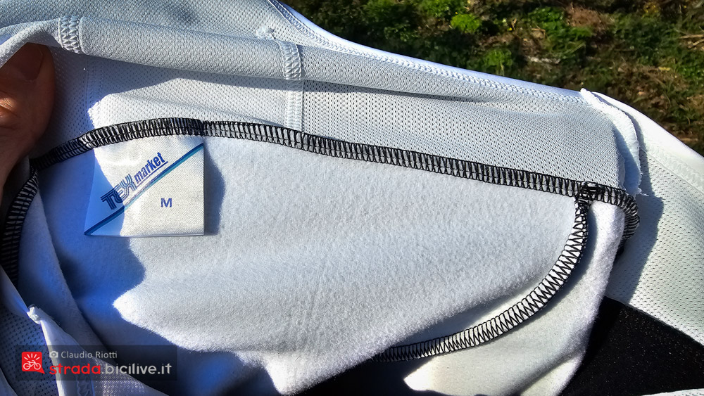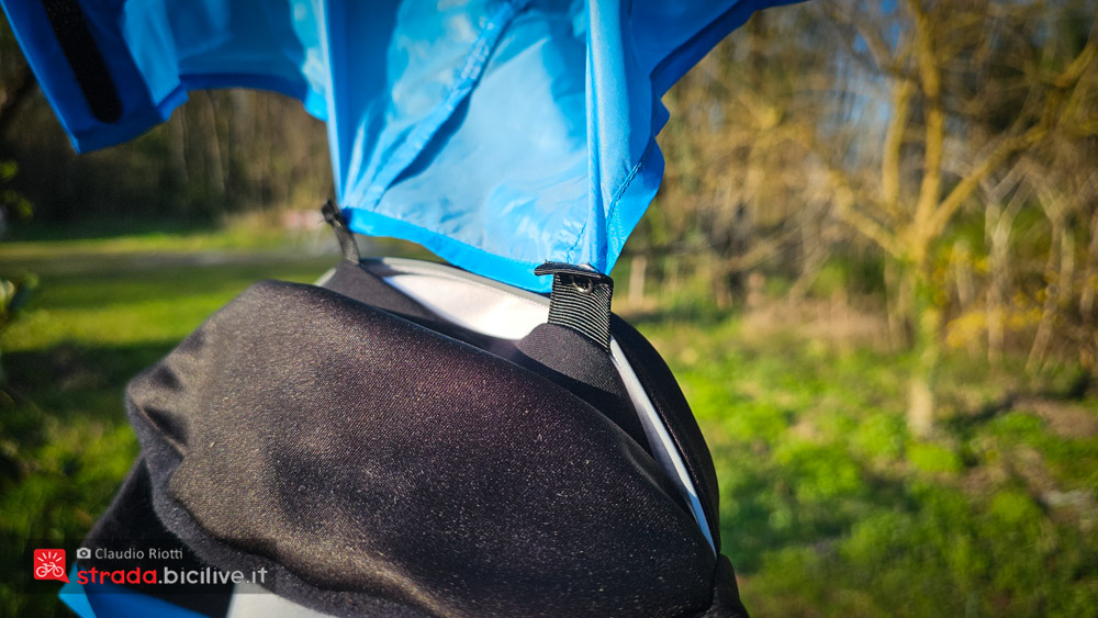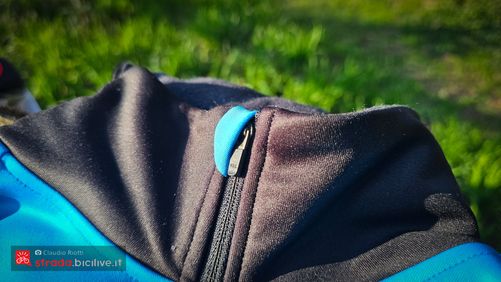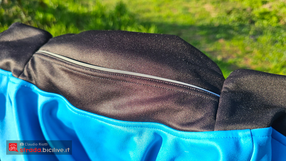 Il leggero cappuccio è ottimo in discesa o se fa particolarmente freddo, si può indossare sotto al casco e protegge bene anche la gola.