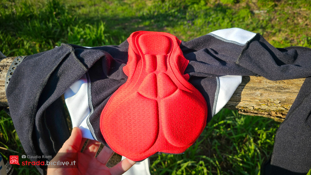 Il fondello tecnico Carbon Men che abbiamo scelto per questo bib è termoformato e pensato per il ciclismo su strada.