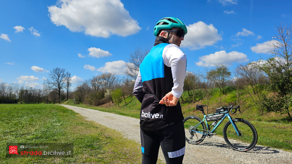 Ancora adesso, a marzo, la sto indossando nelle uscite in gravel alla mattina presto, in queste giornate di mezza stagione fresche o ventose, con la sicurezza però di poterla riporre nelle borse da gravel Deuter che ho sulla bici se esce il sole e inizia a fare caldo.